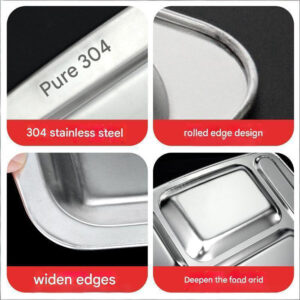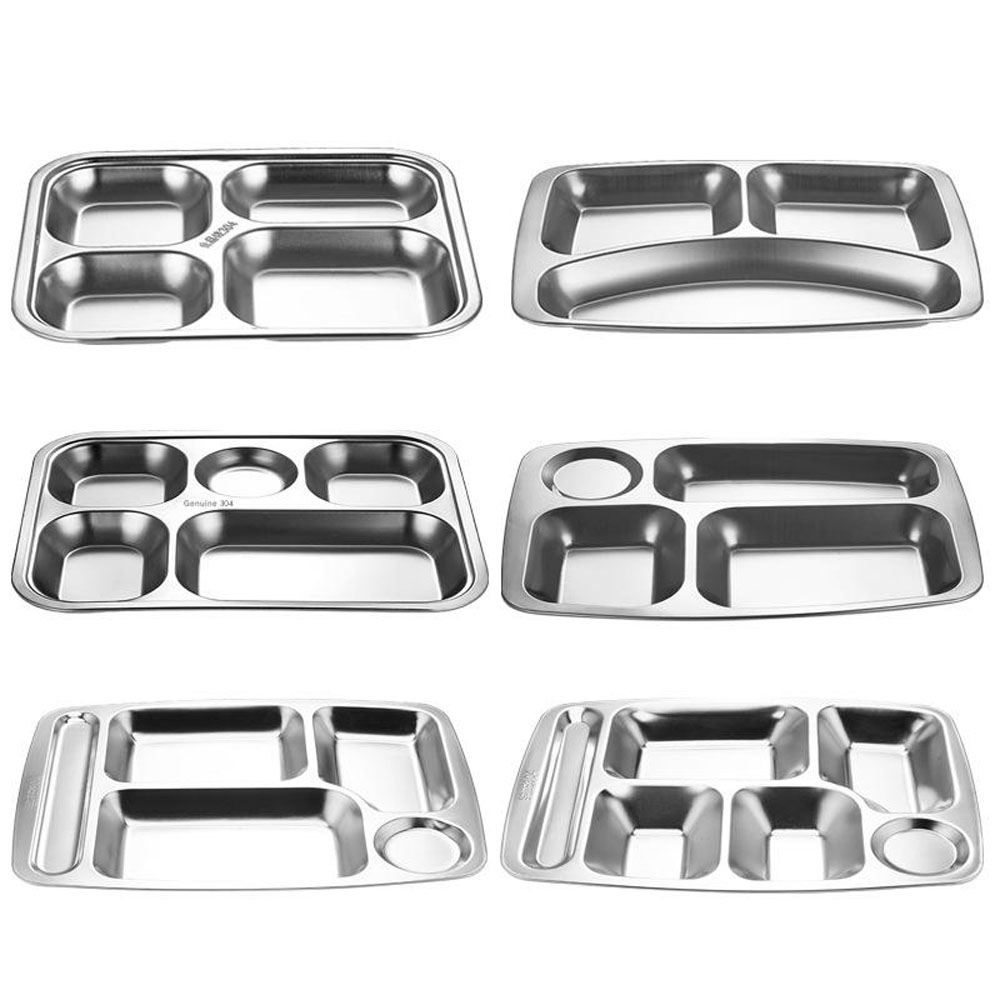 304 Stainless Steel Dinner Plate, School Cafeteria Five- or Six-Compartment Dining Plate, Thickened Stainless Steel Fast Food Plate for Adults and Students
