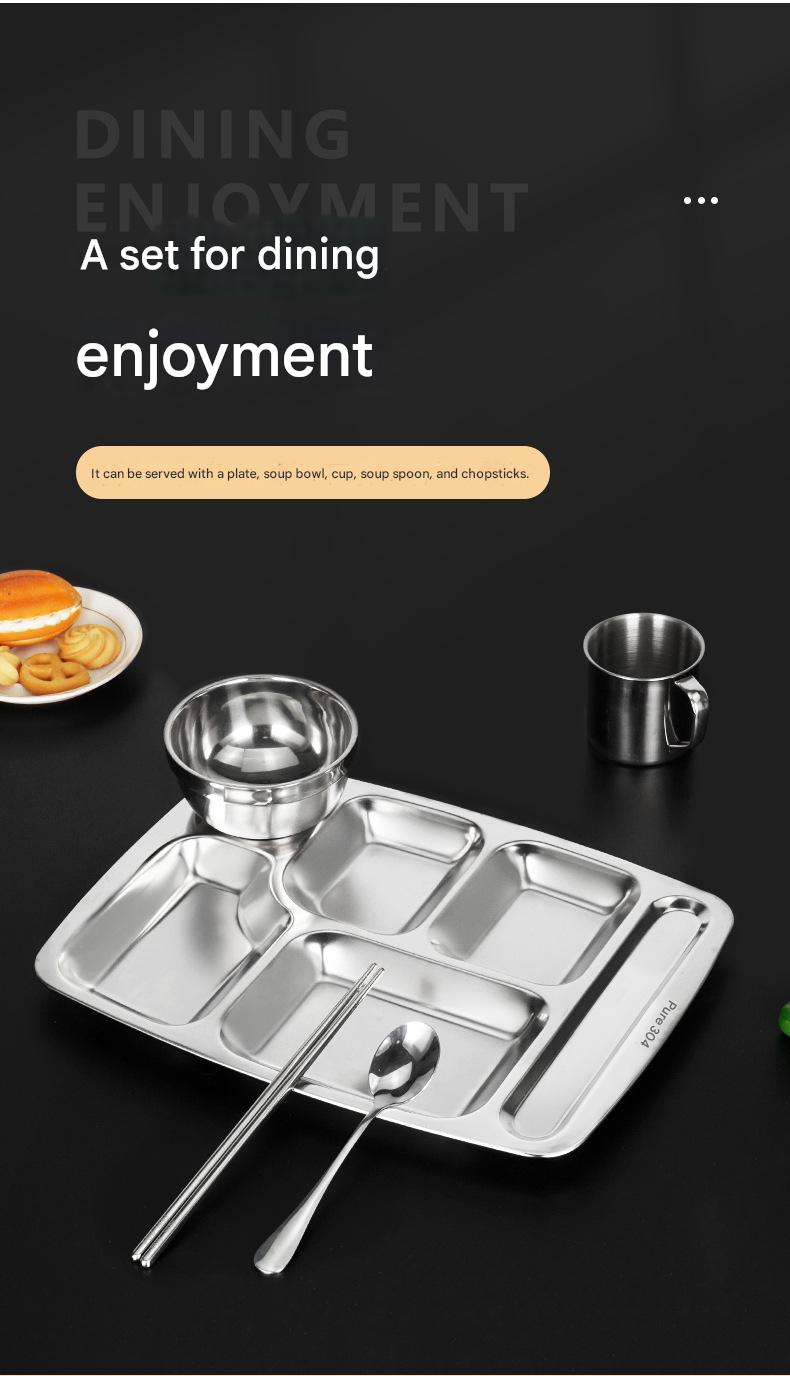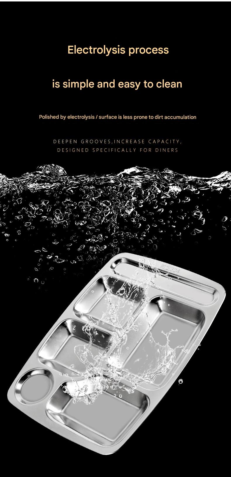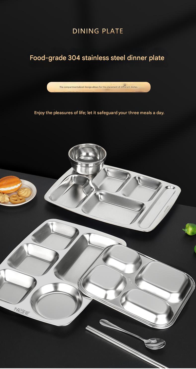 304 Stainless Steel Divided Dinner Plate | 5/6 Compartment Food Tray for School Cafeterias & Fast Food | Thickened, Durable for Adults & Students