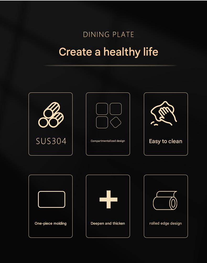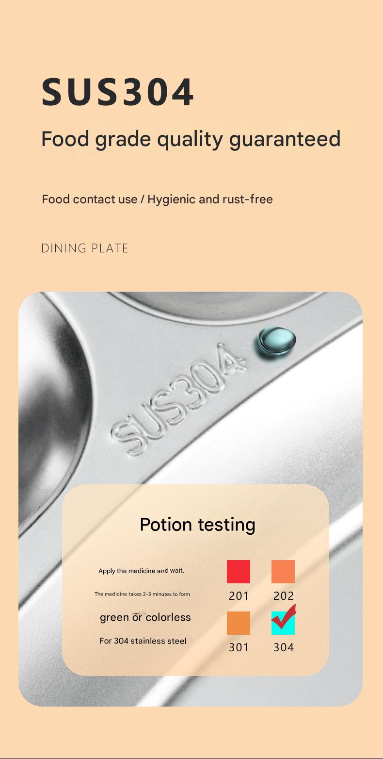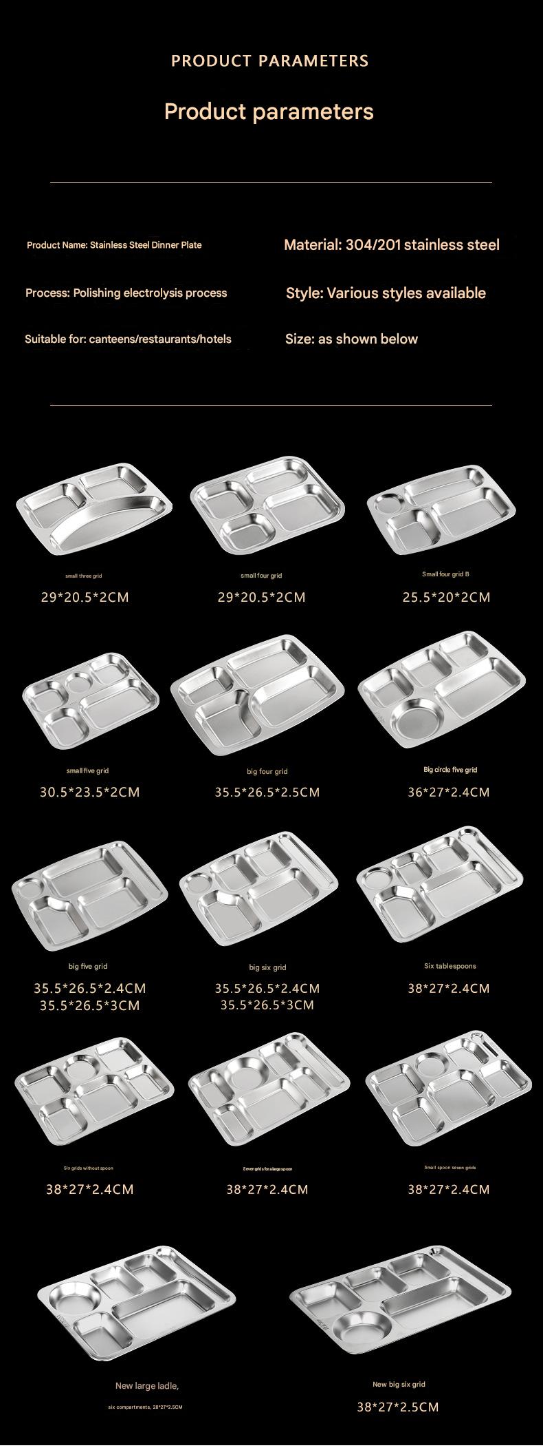 304 Stainless Steel Divided Dinner Plate | 5/6 Compartment Food Tray for School Cafeterias & Fast Food | Thickened, Durable for Adults & Students