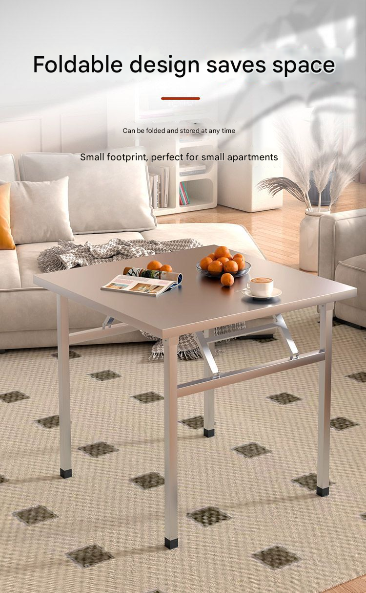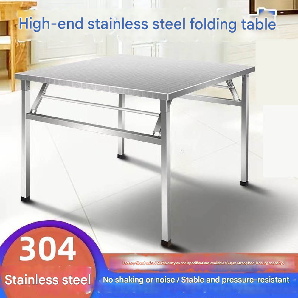 304 Stainless Steel Folding Table — Portable BBQ Table, Outdoor Vendor Stand, Commercial Night Market Use, Simple Dining Table, Small Square Table