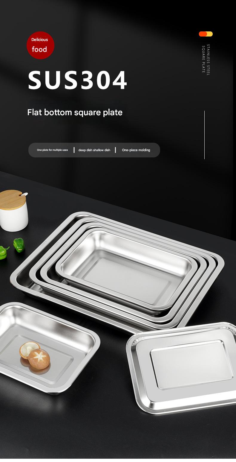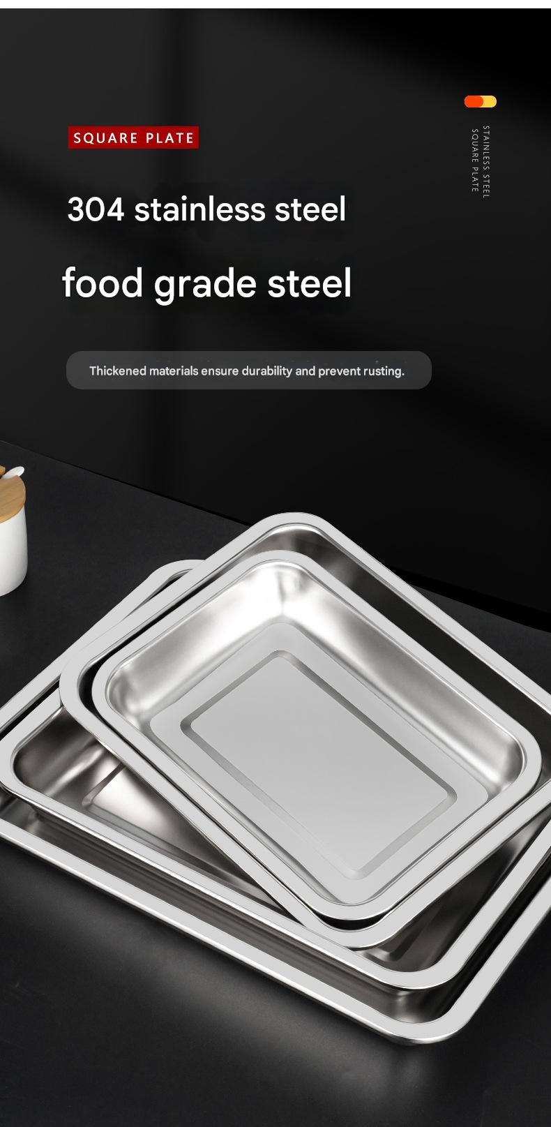 304 Stainless Steel Square Pan, Flat Bottom Barbecue Pan, Dumpling Pan, Restaurant Rice Steamer, Multi-purpose Pan, Thickened Rectangular Tray