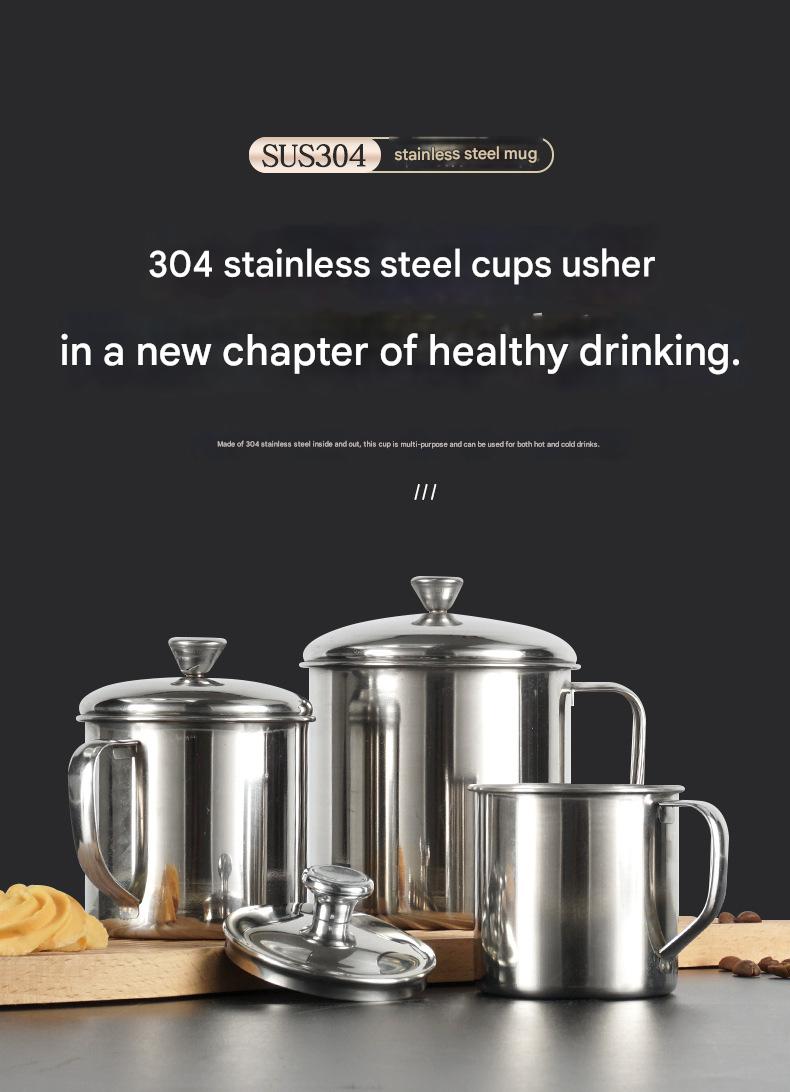 304 stainless steel water cup, thick and large capacity tea cup, kindergarten-specific cup with heat insulation and anti-scald strip, lid-on cup, wholesale available