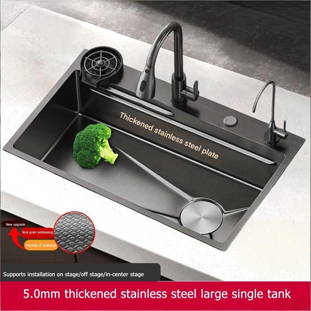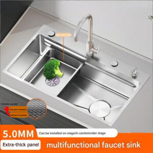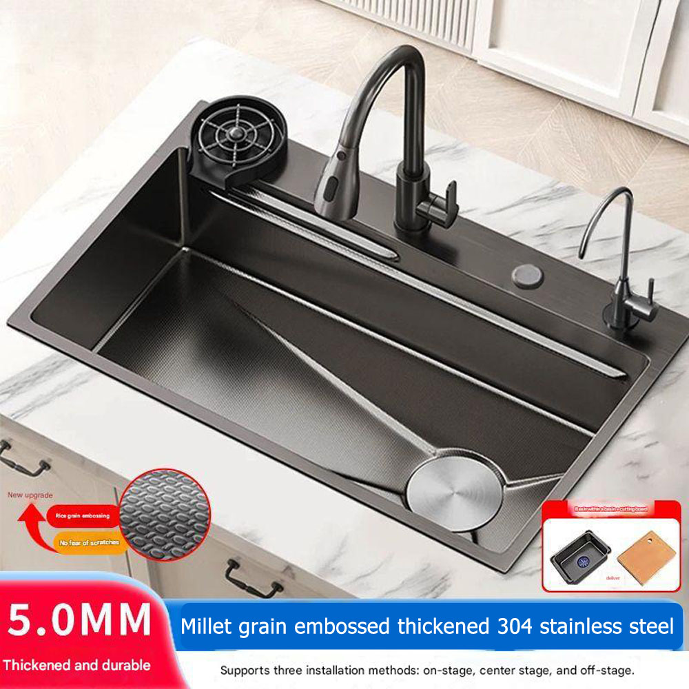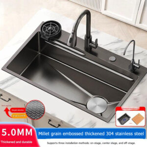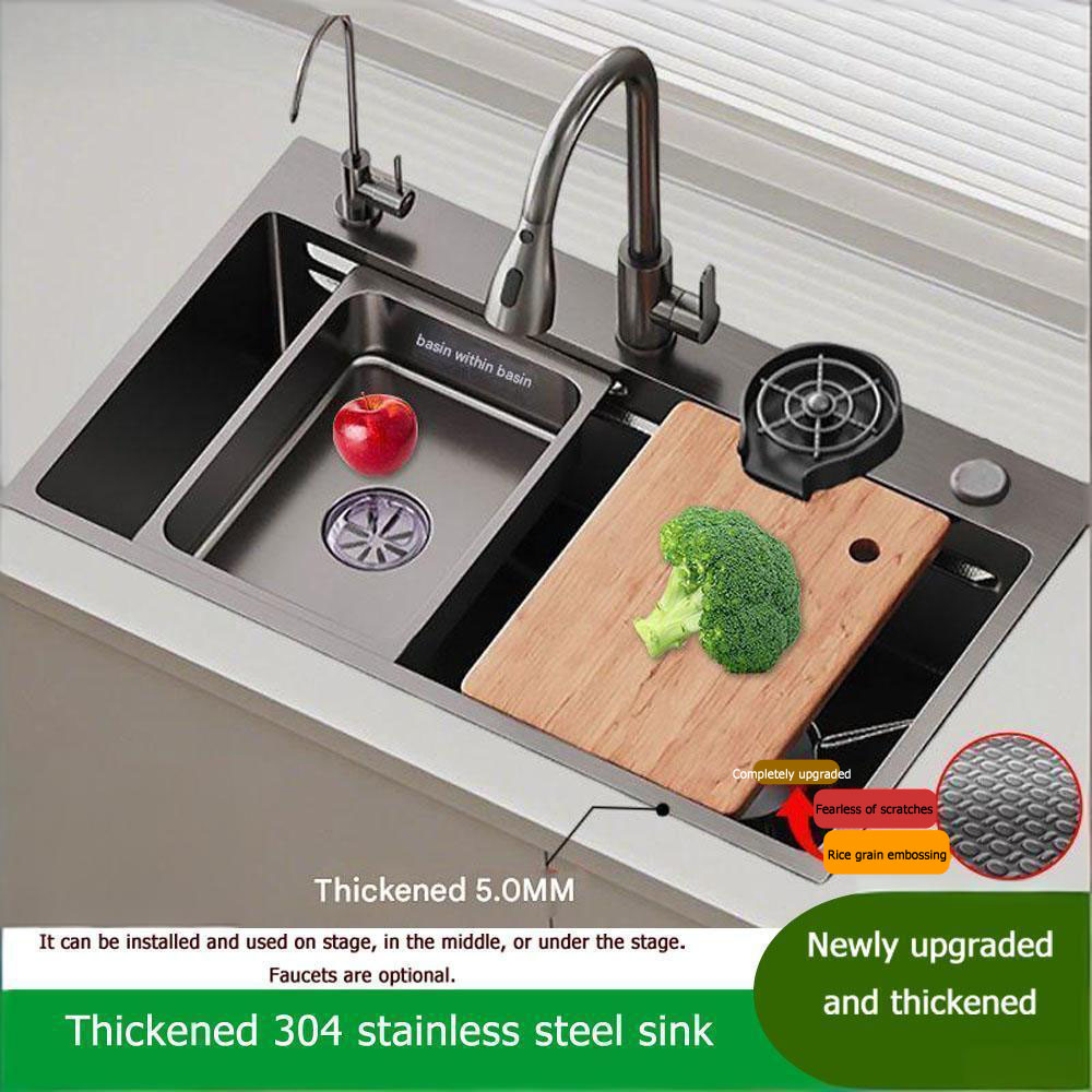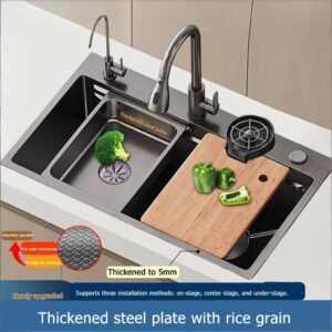 5.0mm rice grain embossed kitchen sink, thickened 304 stainless steel, single bowl for washing vegetables and dishes.