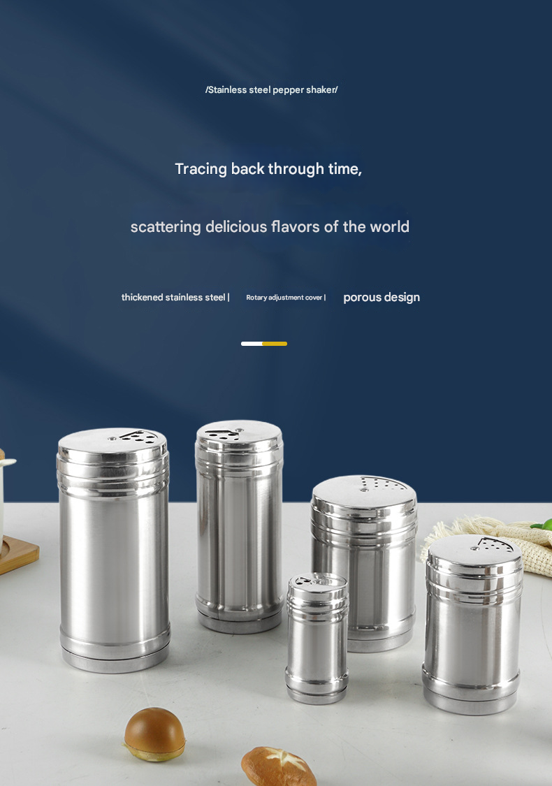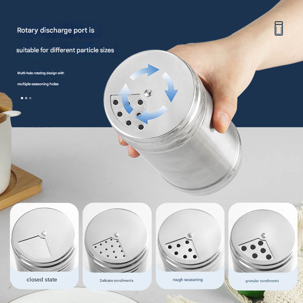 Stainless Steel Spice Jar Set — Kitchen & Home Pepper Shakers, BBQ Seasoning Dispensers, Rotating Cumin Shakers, and Toothpick/Condiment Holders