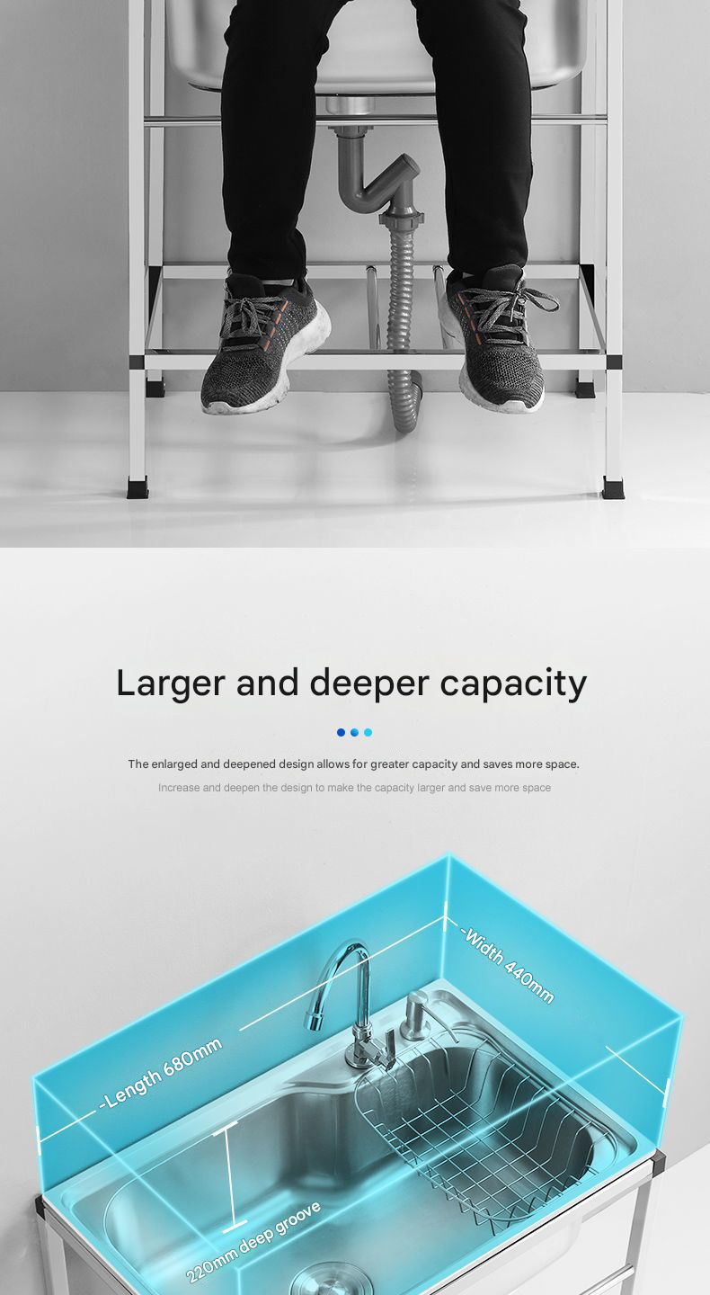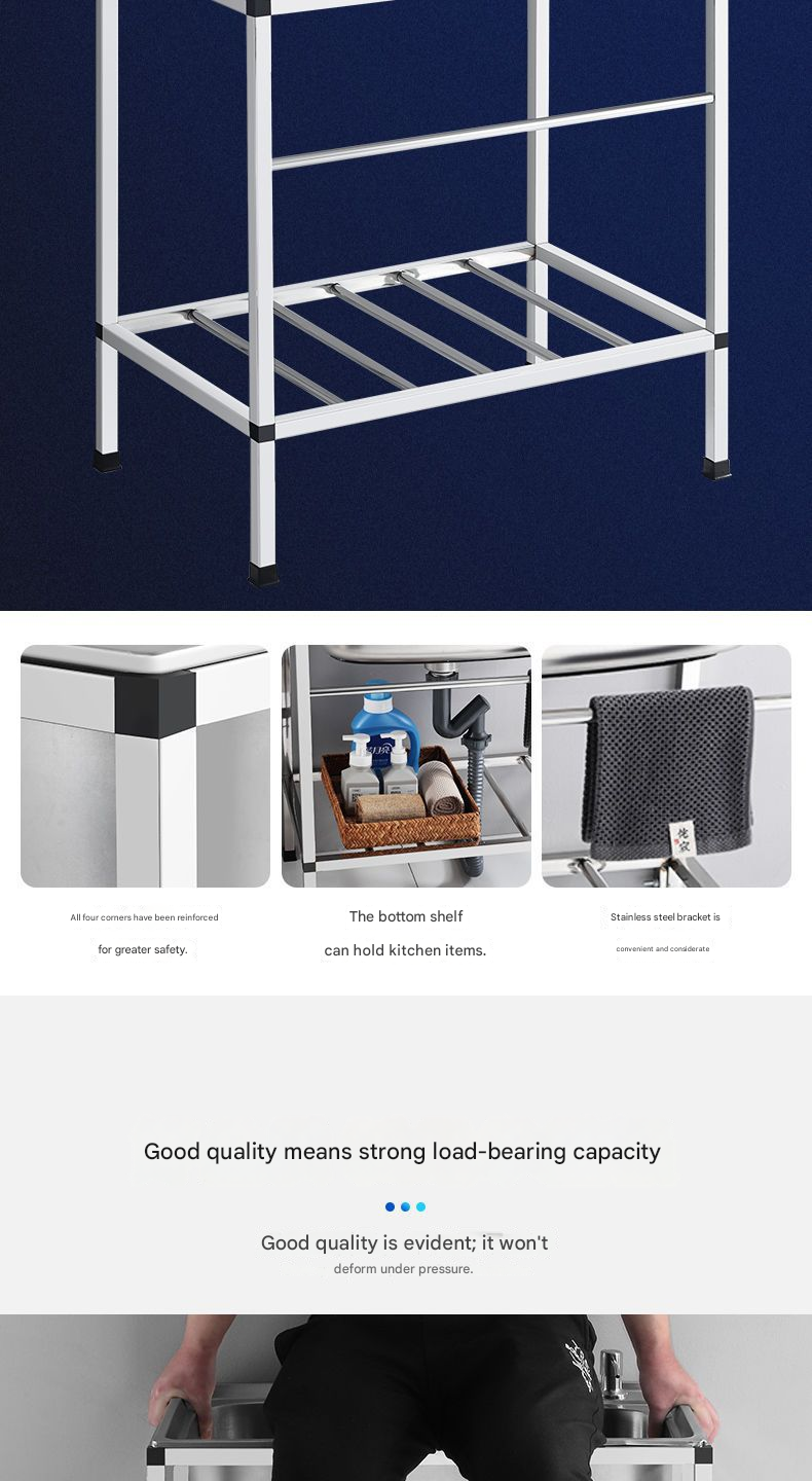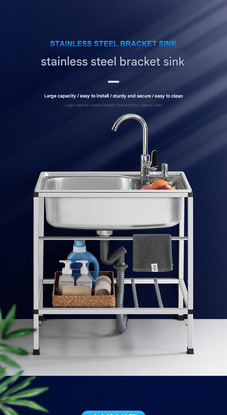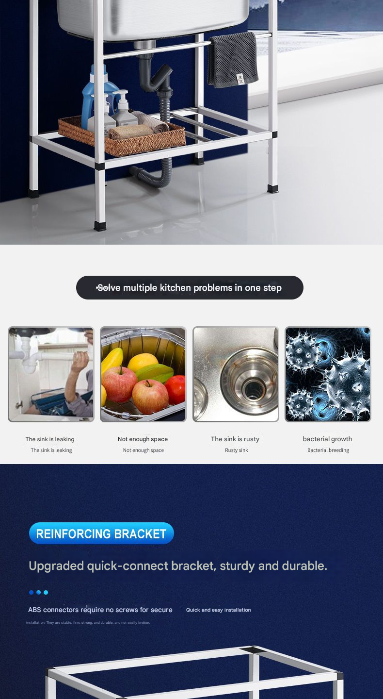 Household Kitchen Stainless Steel Sink Set — Thickened Single-Bowl Sink with Stand, Vegetable & Dish Washing Basin