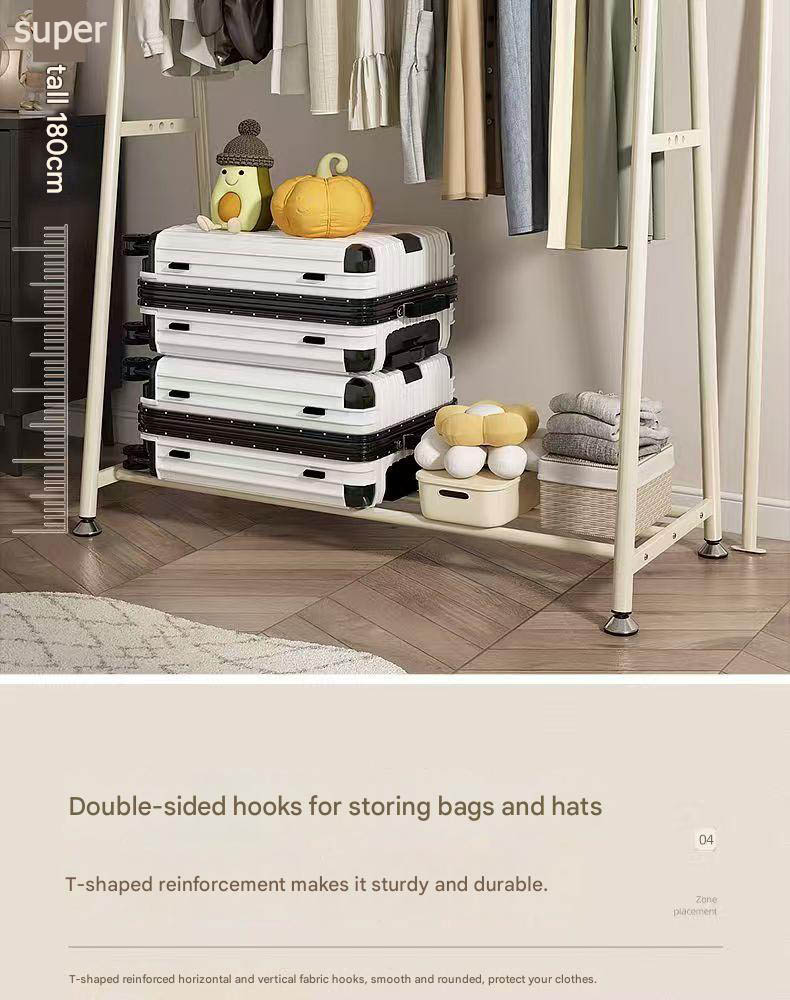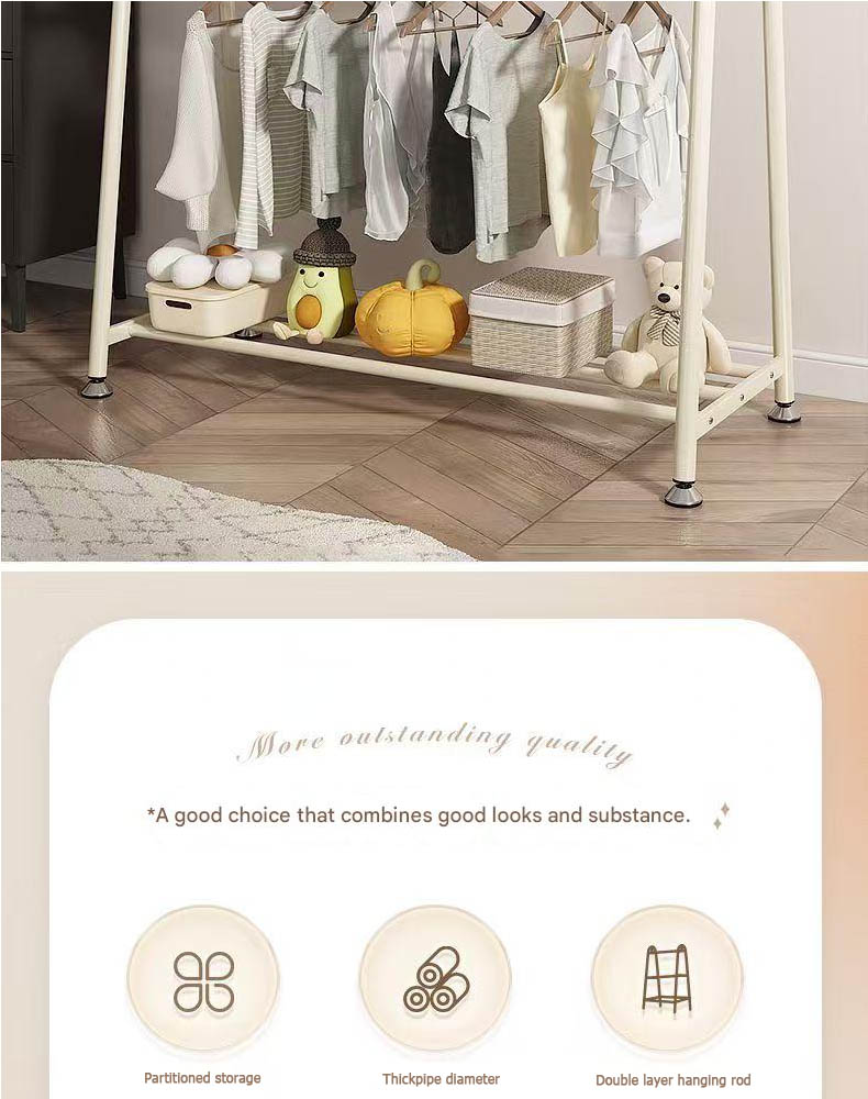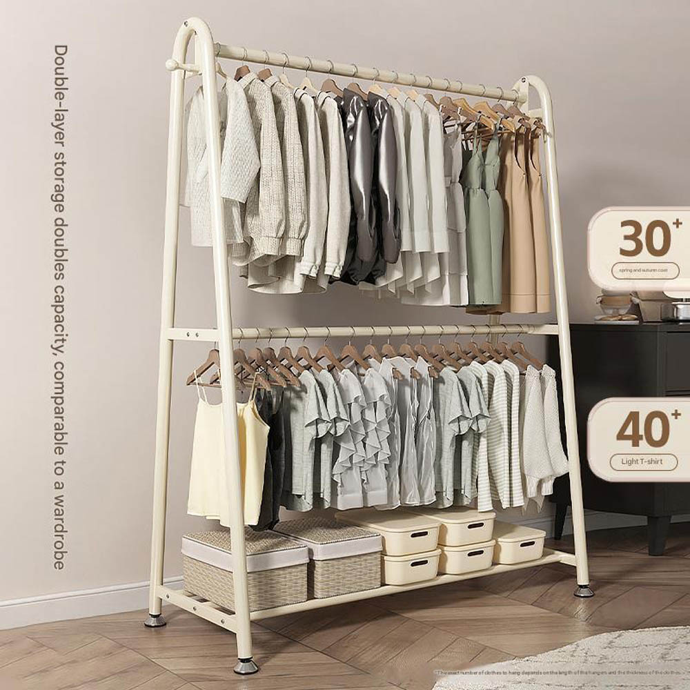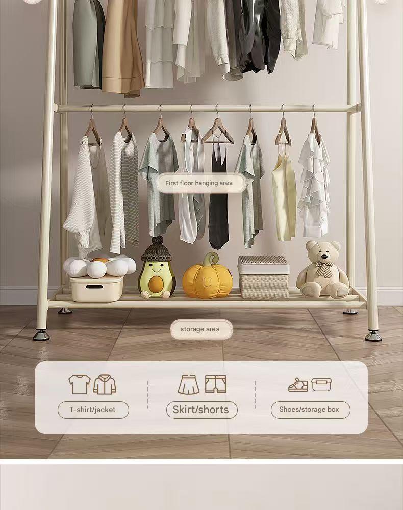 Double-layer floor-standing coat rack for bedroom, portable bedside coat rack, easy-to-use clothes drying rack