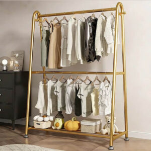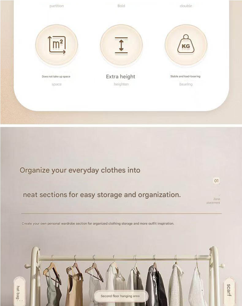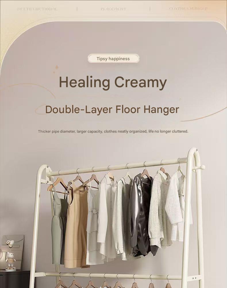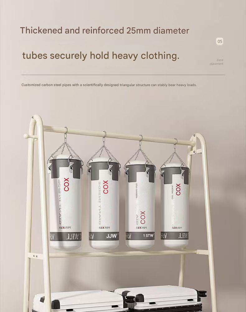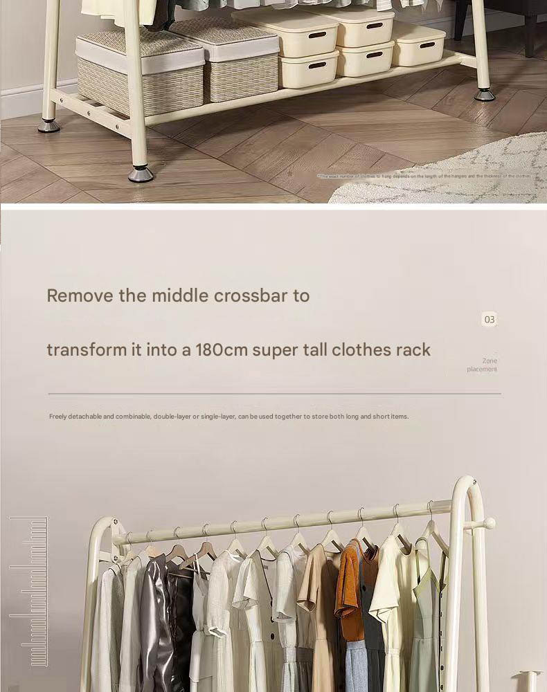 Double-layer floor-standing coat rack for bedroom, portable bedside coat rack, easy-to-use clothes drying rack