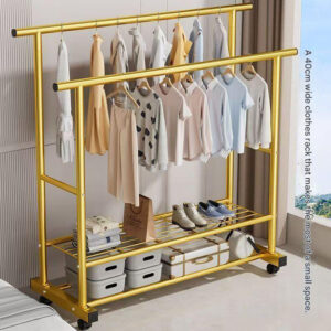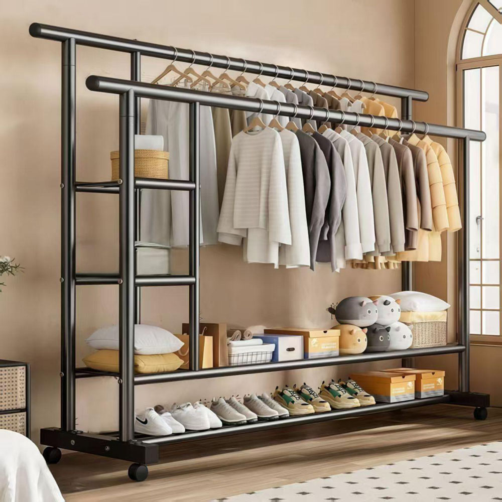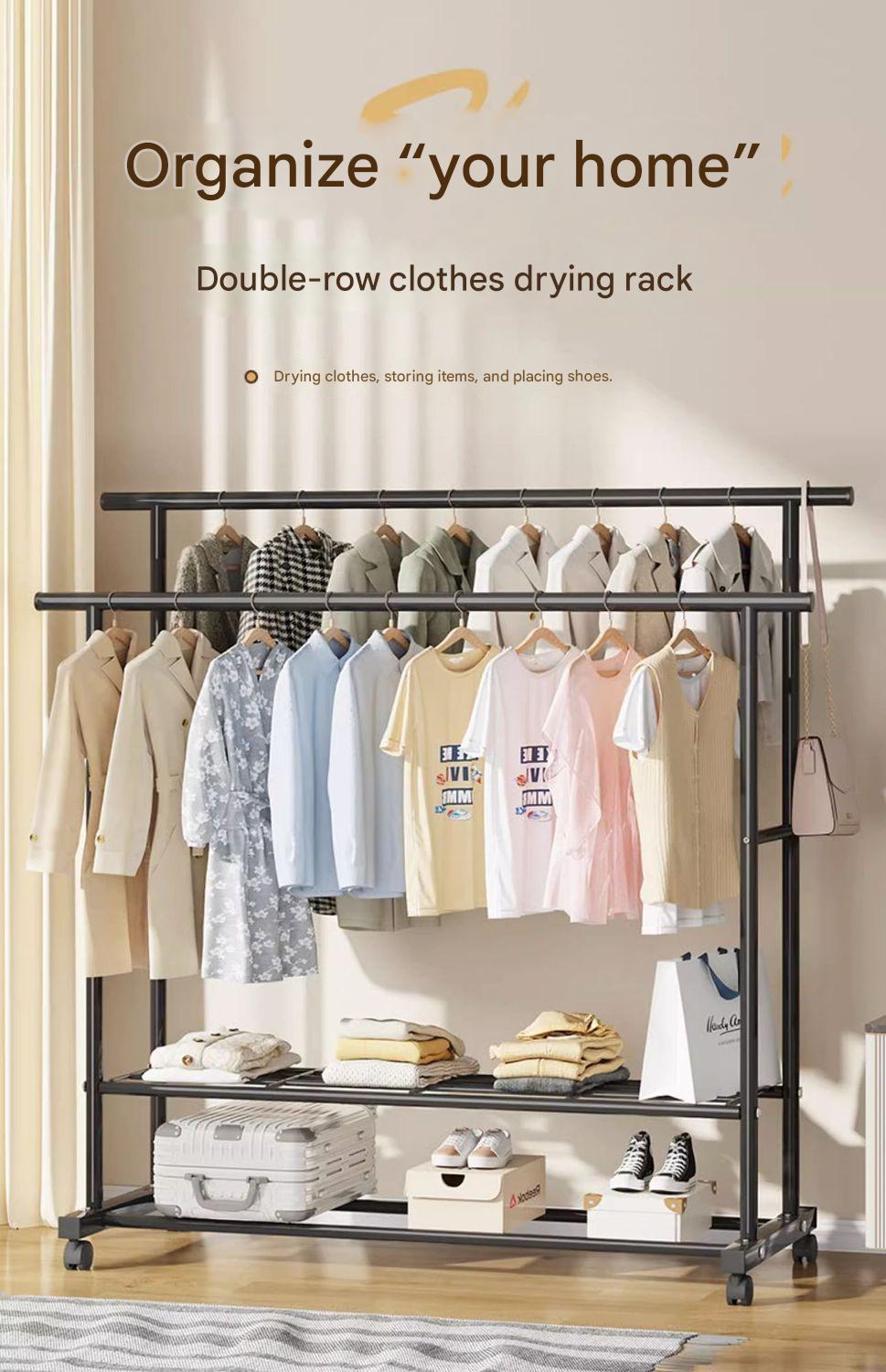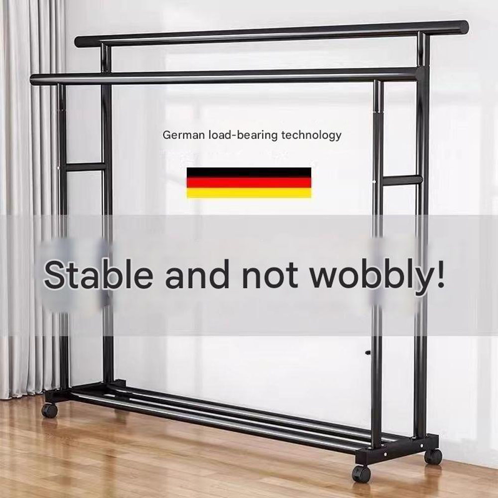 Clothes rack, floor-standing, portable, thickened and reinforced, double-pole clothes rack for home use.