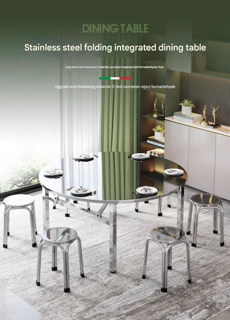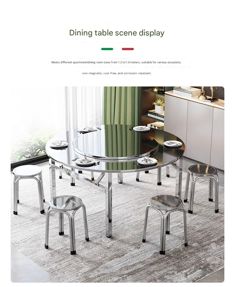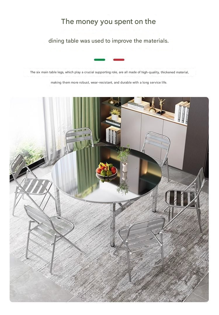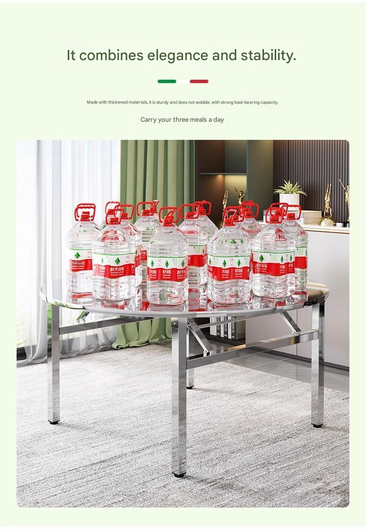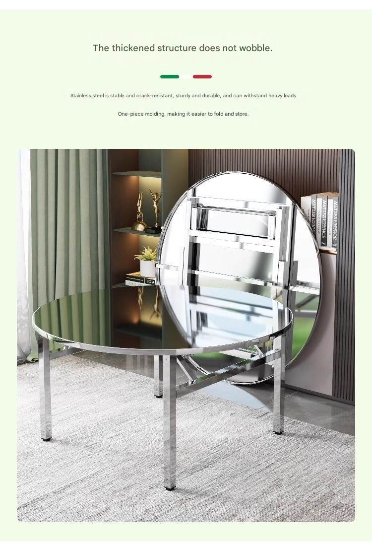 Extra-Thick Stainless Steel Round Folding Table — Ideal for Street Vending, BBQ, Dining, and Food Stalls; Suitable for Commercial and Home Use