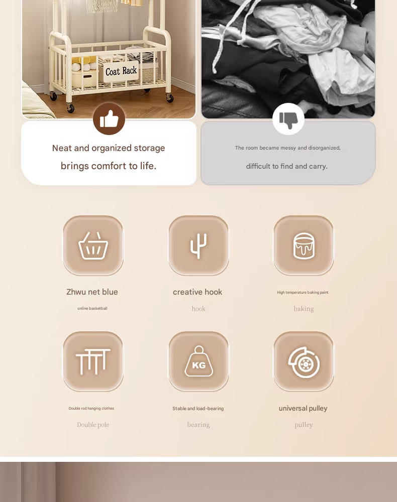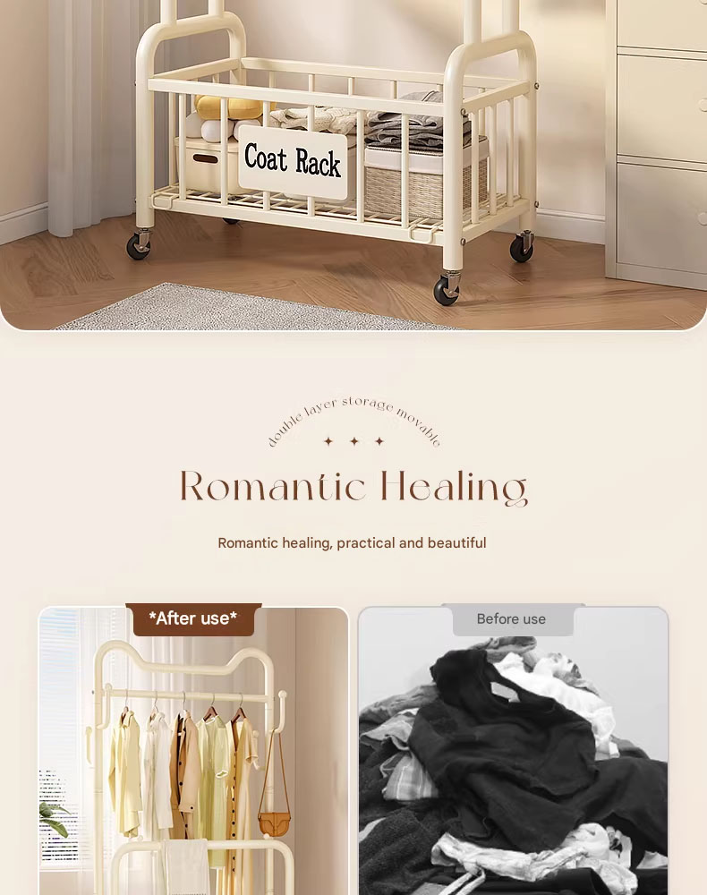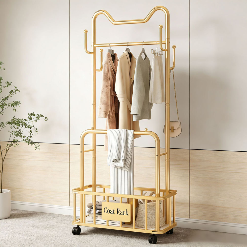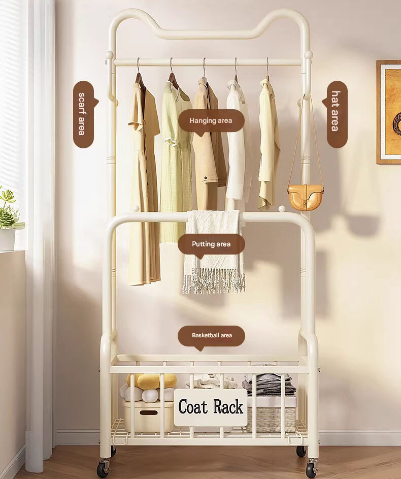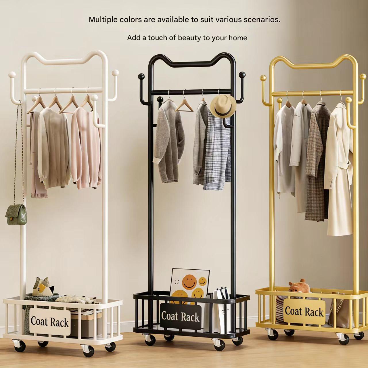 Floor-standing clothes rack, portable household cat-ear clothes rack, indoor clothes hanger, simple coat rack.