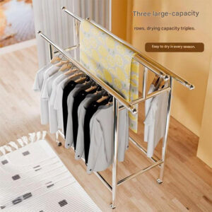 Three-bar design: Increases drying space, easily hanging large blankets, wet clothes, or everyday garments.