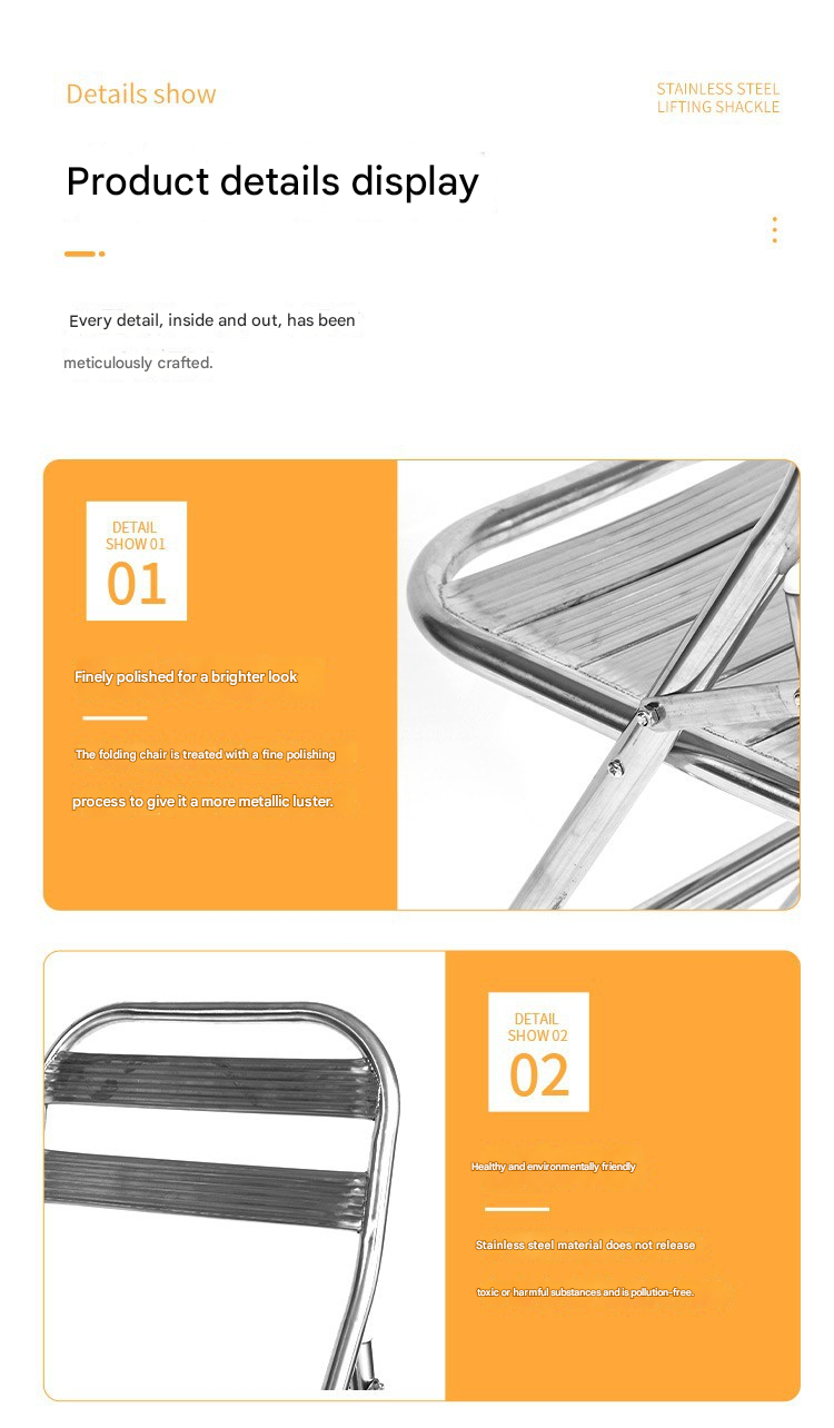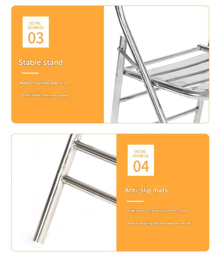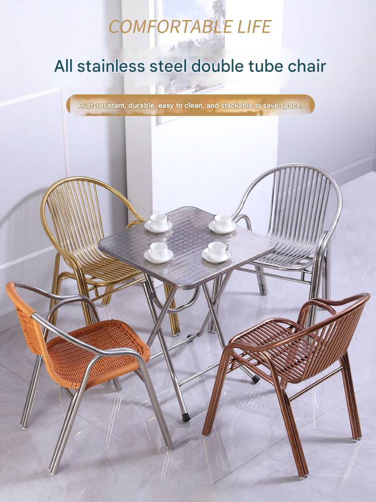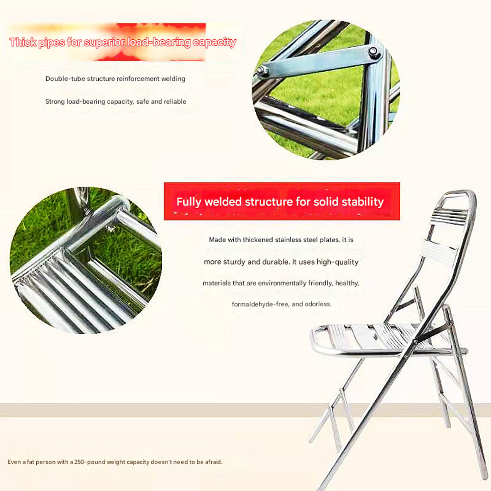 Folding Chair — Household Dining Chair, Beach Chair, Stainless Steel Balcony Seating, Outdoor Leisure Chair, Backrest Chair (Single-Seater)