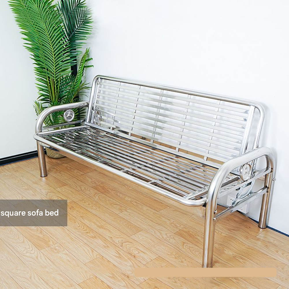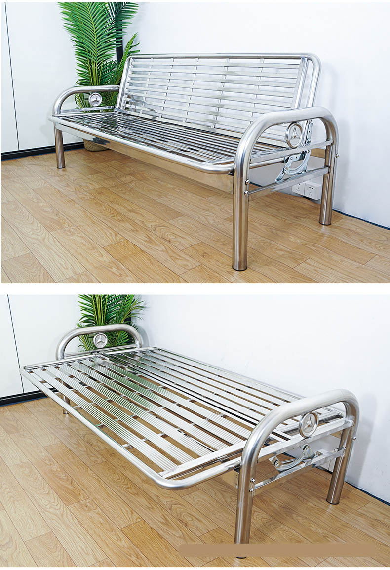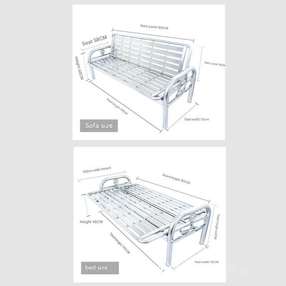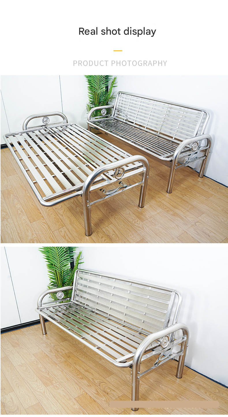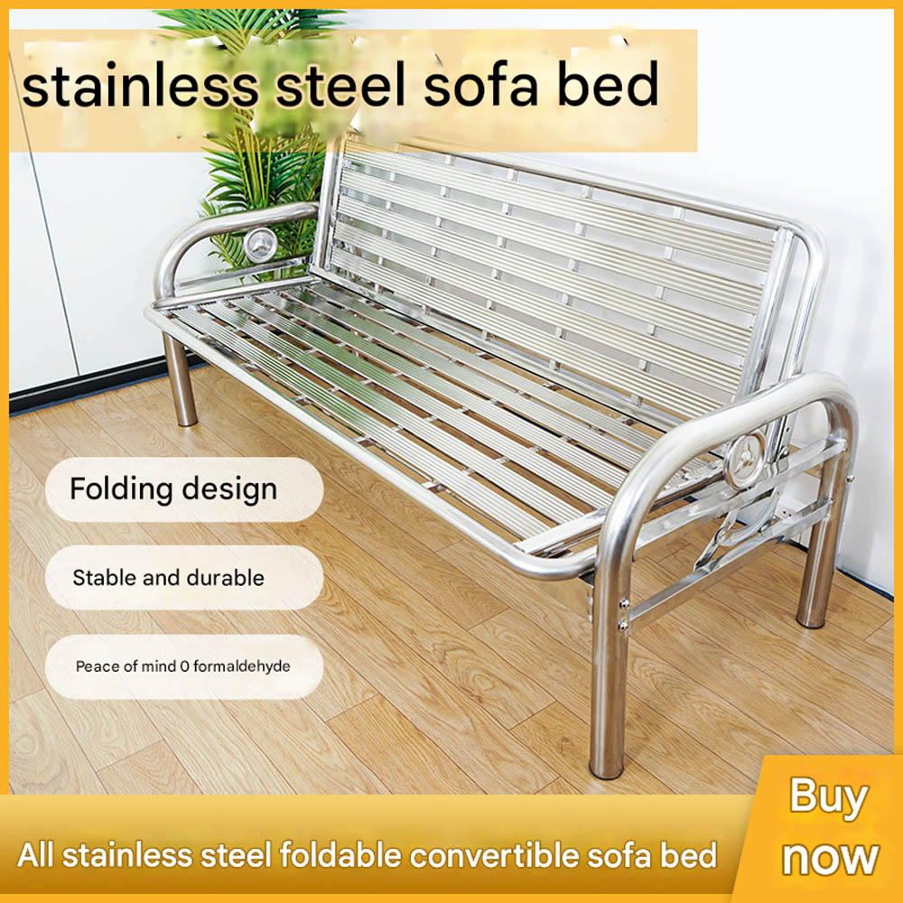 Stainless Steel Foldable Dual-Purpose Sofa Bed — Iron-Frame Folding Bed for Office or Living Room — Single-Person Nap Bed