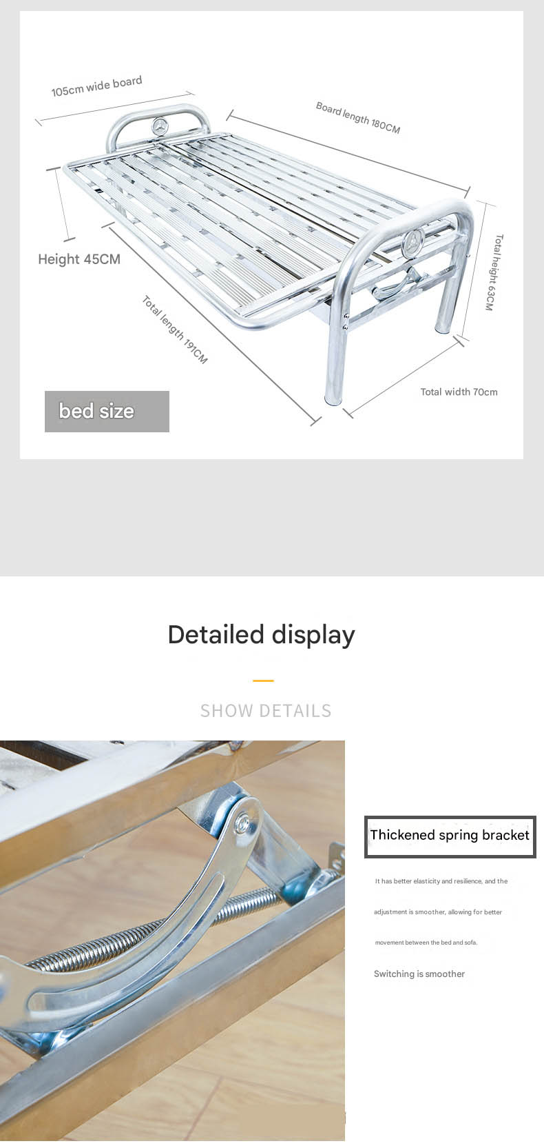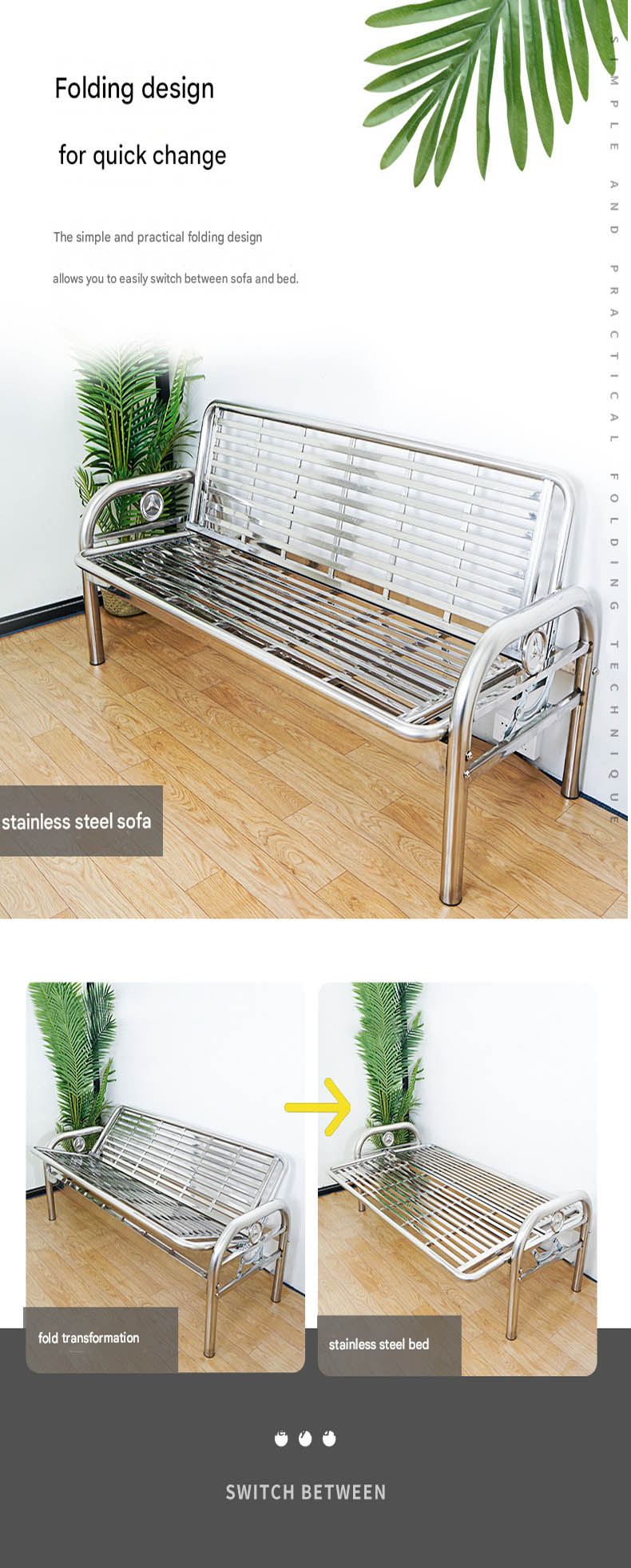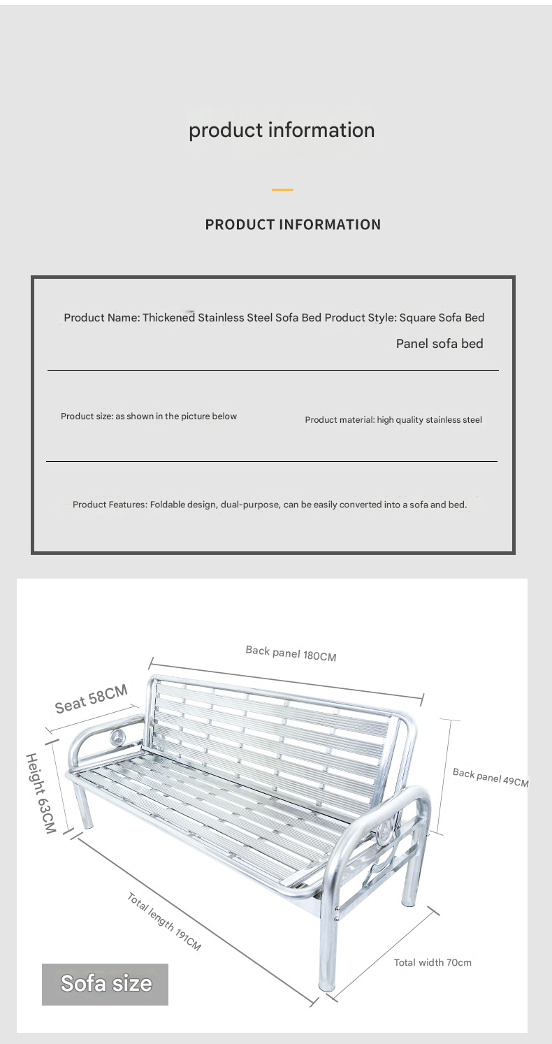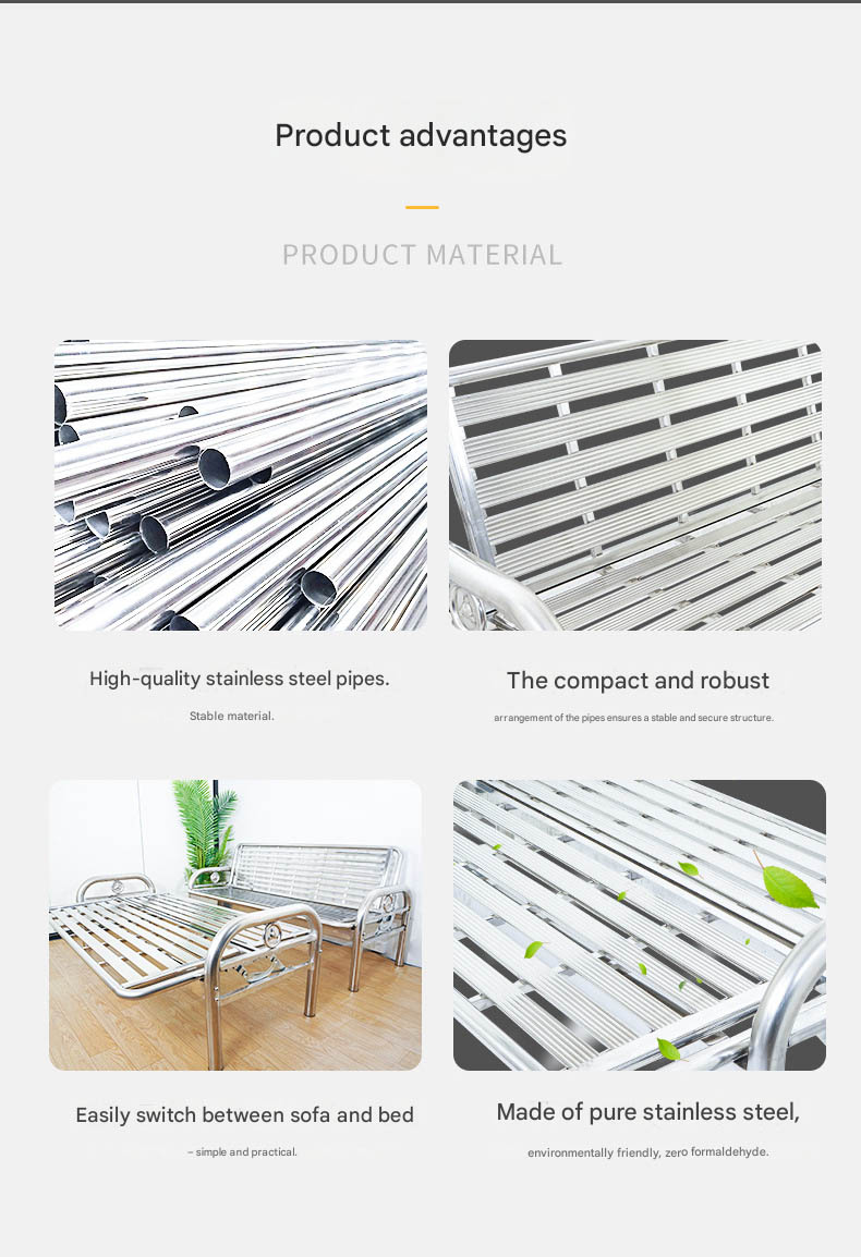 Stainless Steel Foldable Dual-Purpose Sofa Bed — Iron-Frame Folding Bed for Office or Living Room — Single-Person Nap Bed