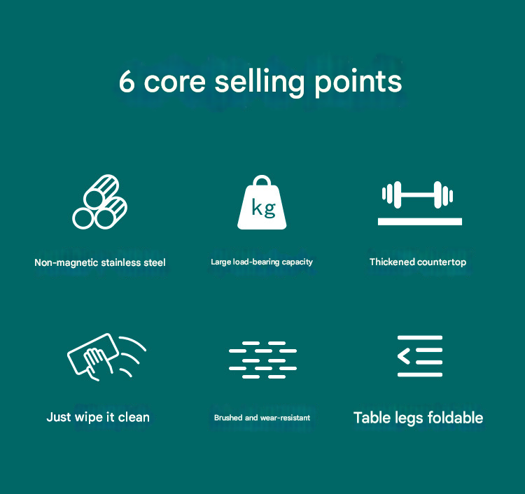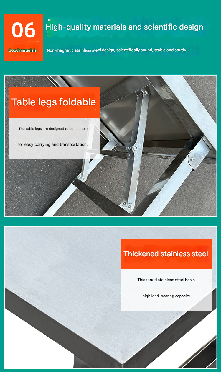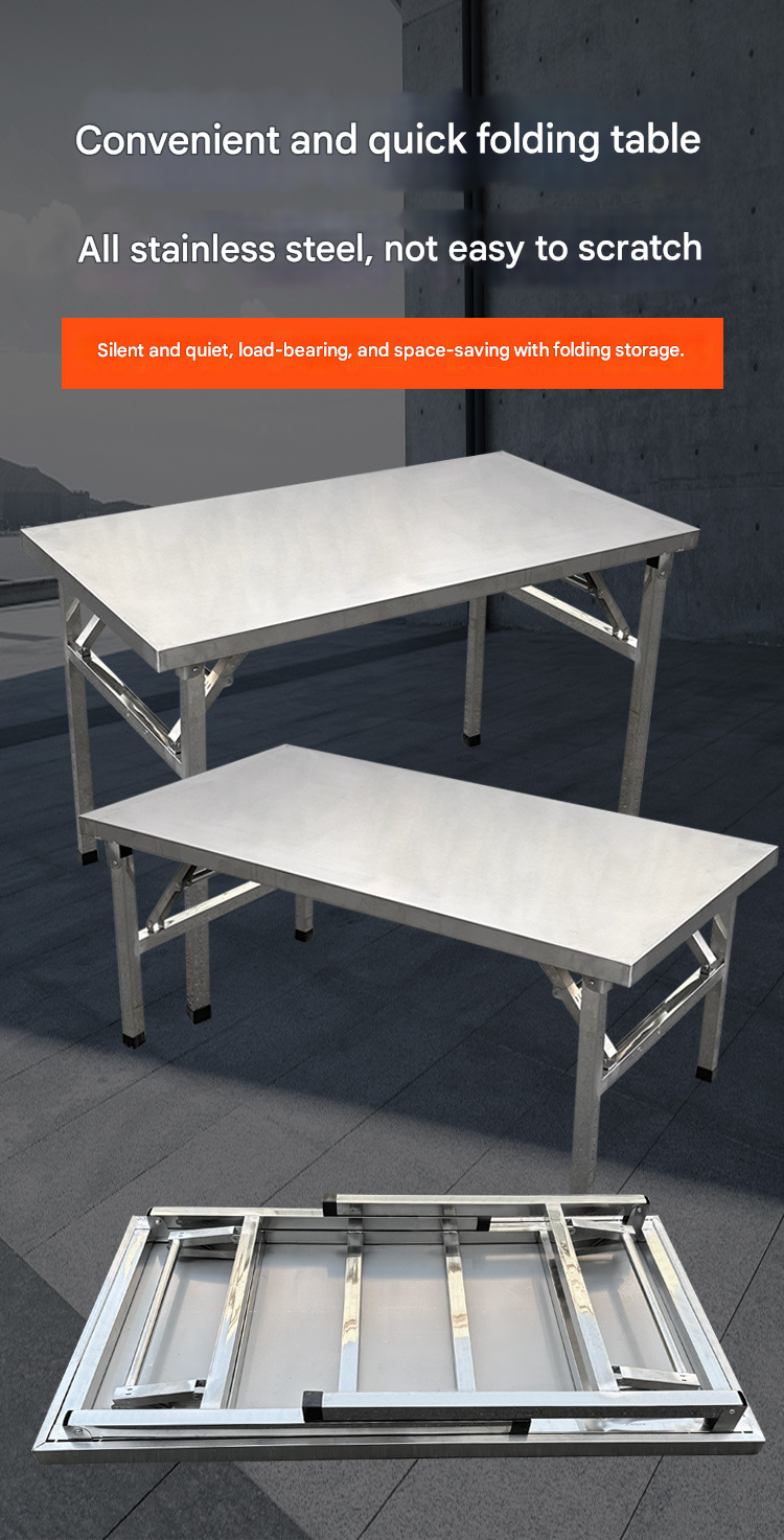 Stainless Steel Folding Table — Kitchen Dining Table, Banquet Setup, Night Market Stall, and Outdoor BBQ Station