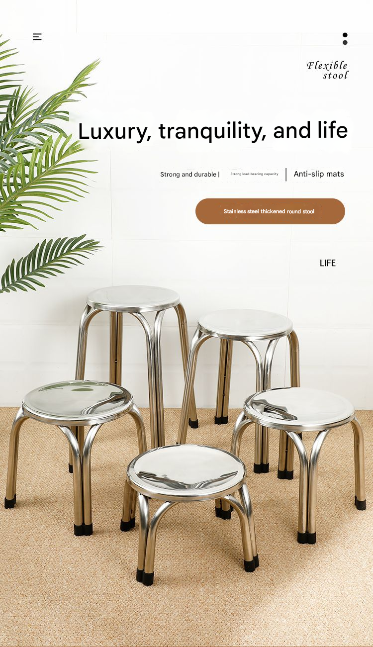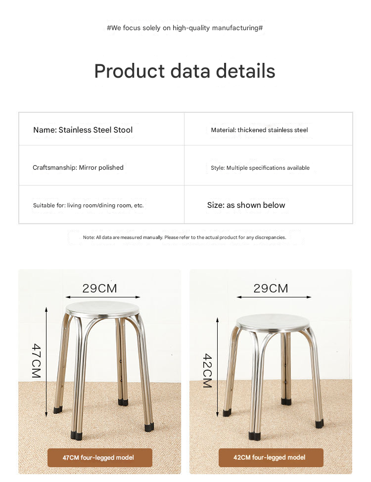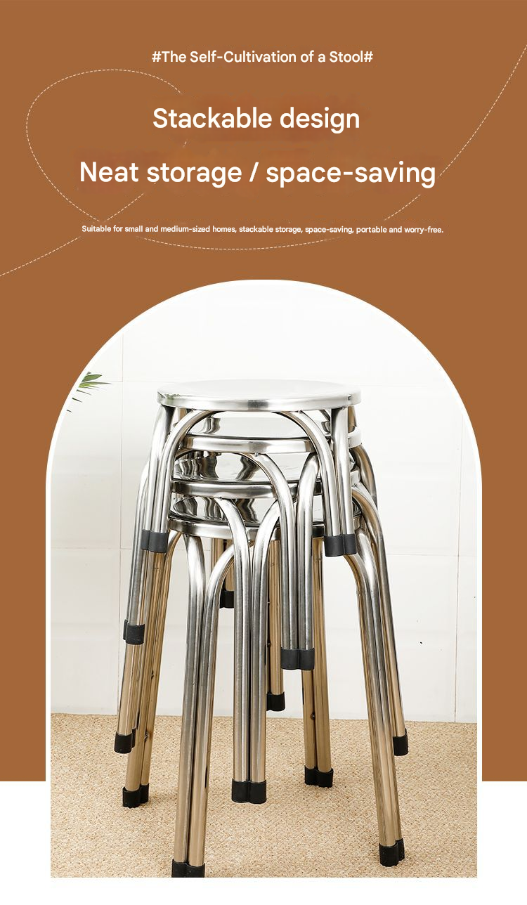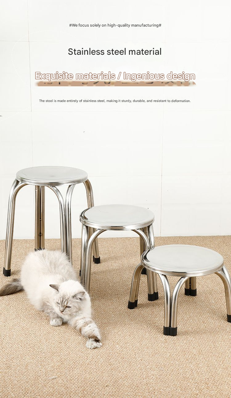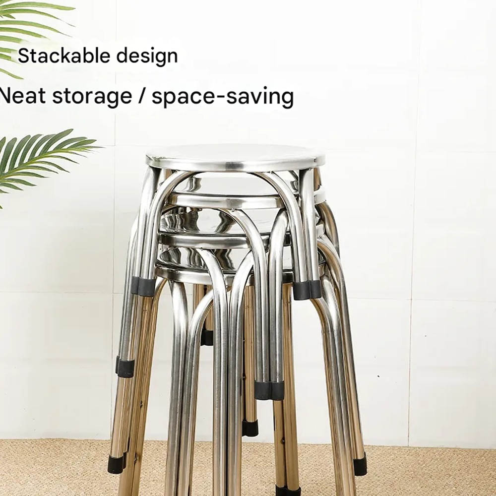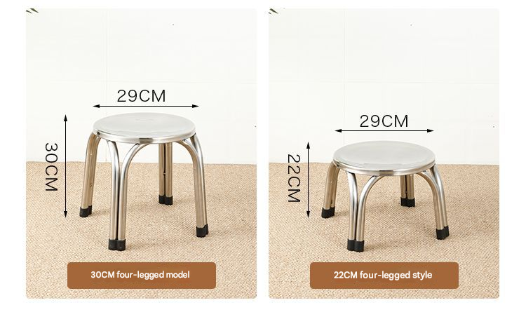 Stainless Steel Four-Legged Stool – Household Round Seat, Ideal for Outdoors, Restaurants, Dining Tables, Street Stalls, and High Seating – Simple Metal Bench