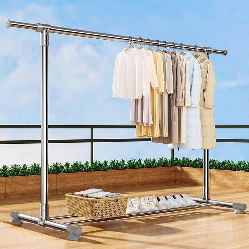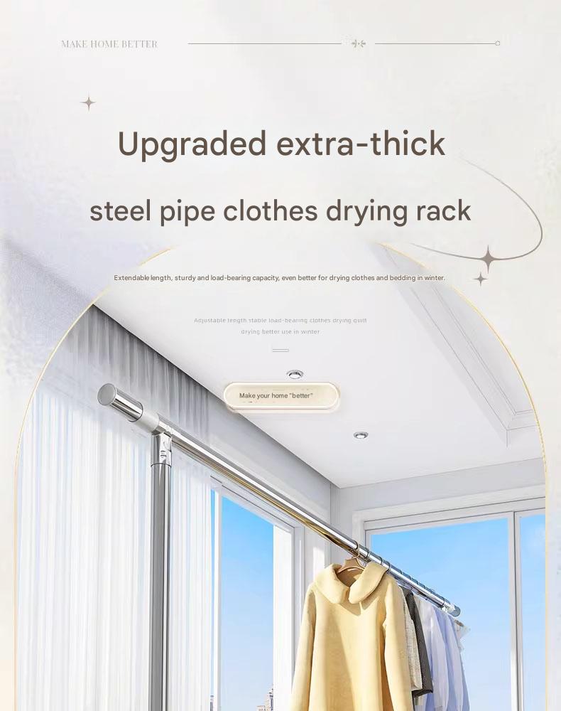 Stainless steel telescopic double-pole floor clothes rack, thickened portable clothes drying rack for balconies, perfect for drying bedding outdoors.