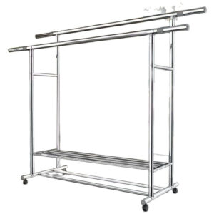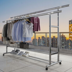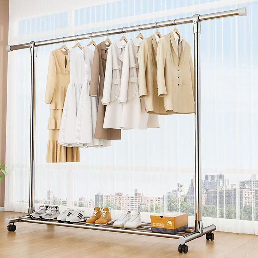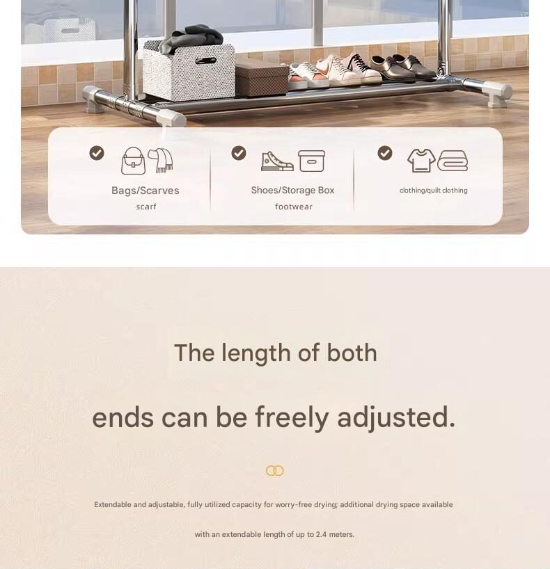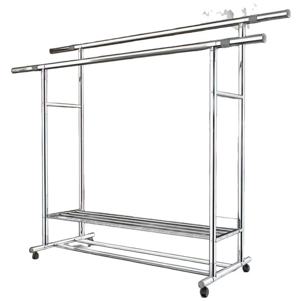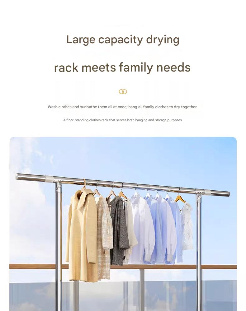 Clothes rack, floor-standing, portable, thickened and reinforced, double-pole clothes rack for home use.