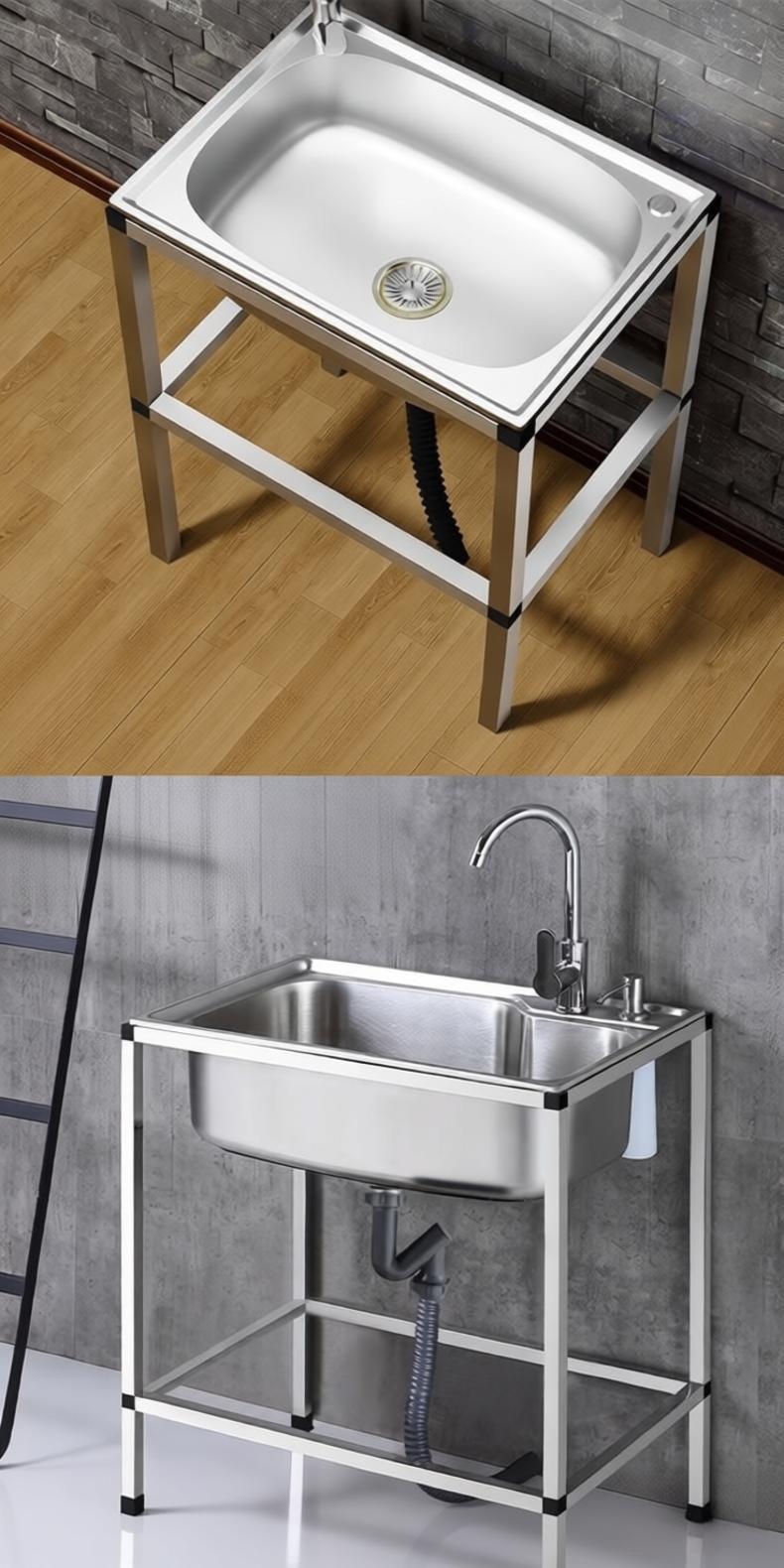 This kitchen sink features an integrated drain rack, is made of thickened stainless steel, has a single-basket vegetable washing area, and is a multi-functional kitchen work surface with a splash-proof design. It is easy to clean.